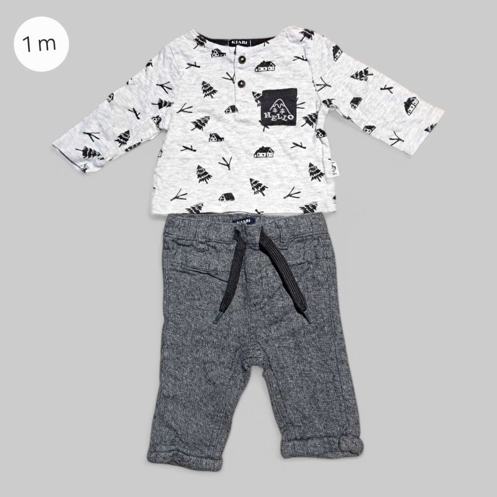 ENSEMBLE Etat : comme neuf € 5.00 Sexe : GarçonTaille : 54 cm Age : 1 moisCouleur : GrisMatière : coton Marque : KIABI Article unique, quantité = 1Ajouter au panierRetour page précédente