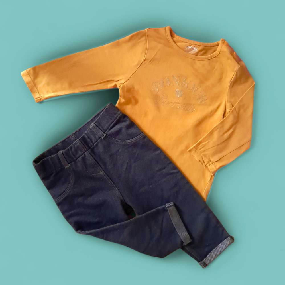 ENSEMBLE Etat : excellent € 5.00 Sexe : FilleTaille : 74 Age : 12 moisCouleur : jauneMatière : coton Marque : KIABI Article unique, quantité = 1Ajouter au panierRetour page précédente