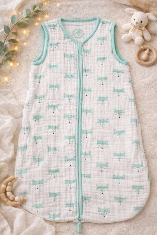 GIGOTEUSE éTé Etat : excellent € 3.50 Taille : 0/3 m Joli gigoteuse , tog 1.5 en gaz de coton .Article unique, quantité = 1Ajouter au panierRetour page précédente