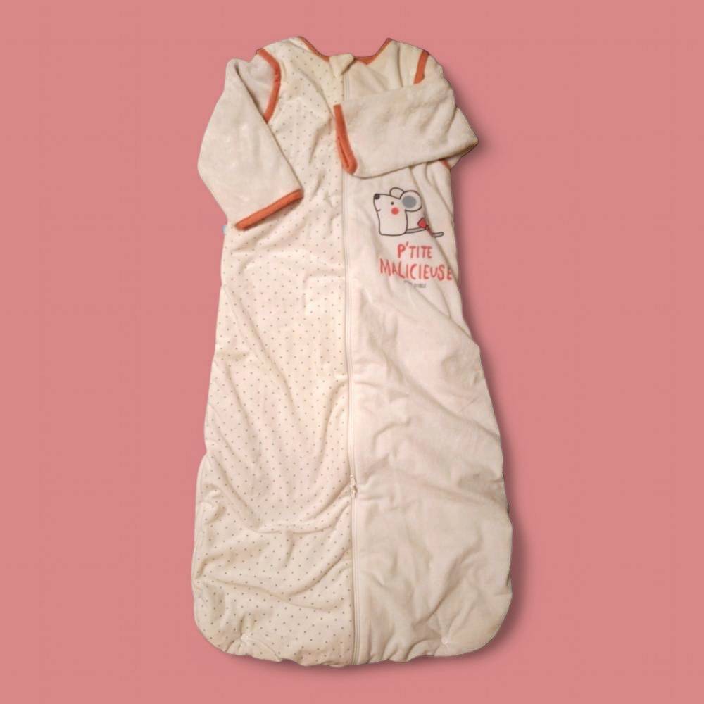 Manche amovible , Tog 3 , gigoteuse hiver bien chaude en coton epais, toute douce , fermeture centrale, 3 pression à l'arrière pour la raccourcir.
