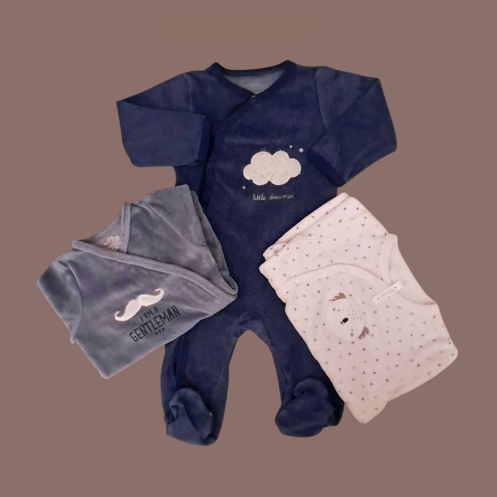 LOT PYJAMAS Etat : comme neuf € 6.00 Sexe : GarçonTaille : 62 Age : 3 moisCouleur : Bleue marine Matière : coton Article unique, quantité = 1Ajouter au panierRetour page précédente
