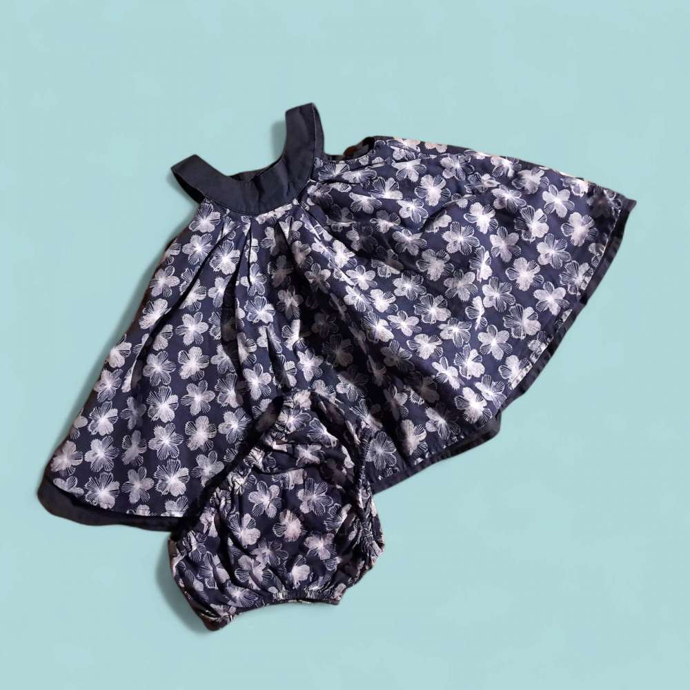 ROBE éTé Etat : comme neuf € 8.00 Sexe : FilleTaille : 62 Age : 3 moisCouleur : Bleue marine Matière : coton Article unique, quantité = 1Ajouter au panierRetour page précédente
